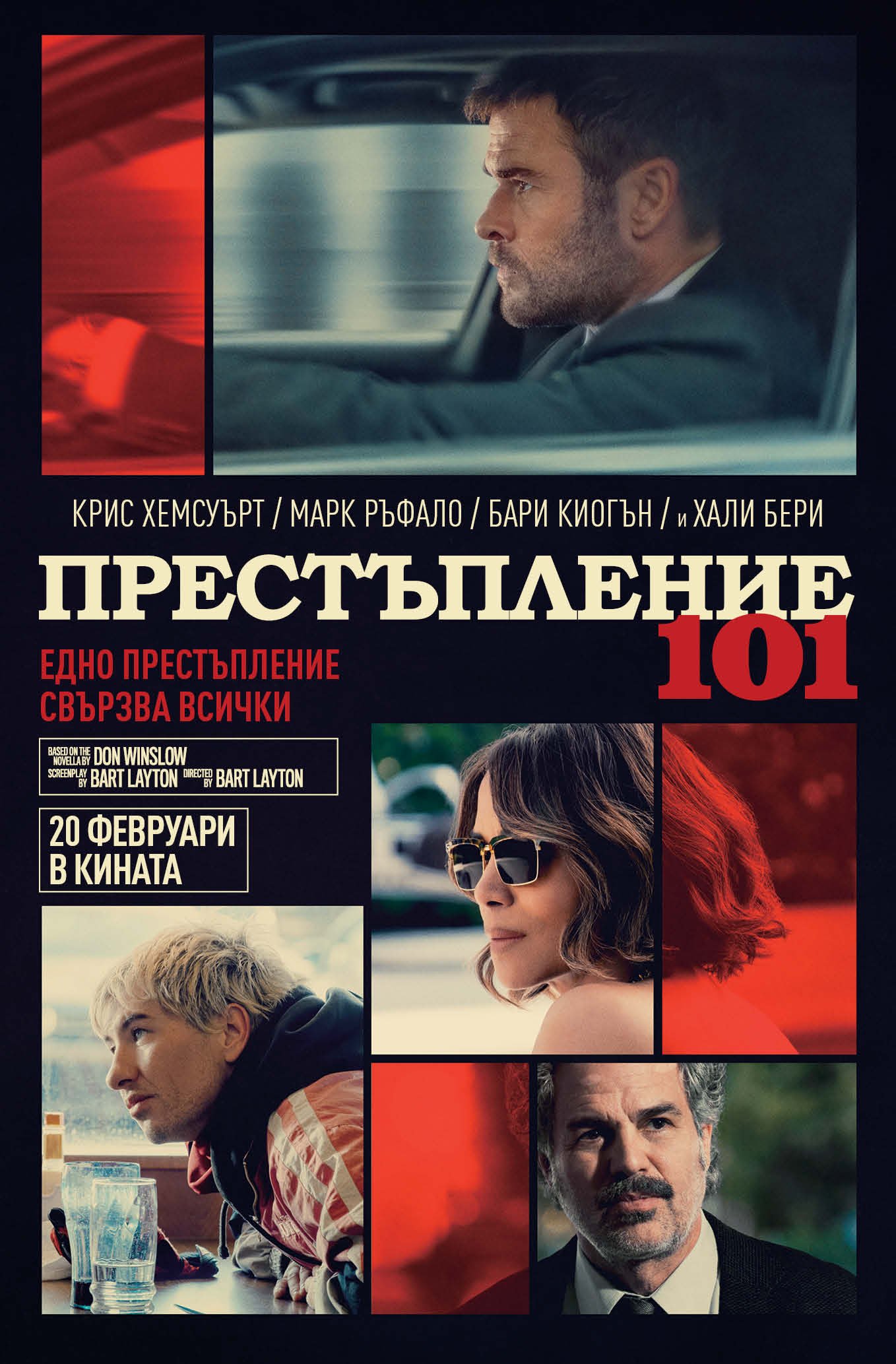 Поемете дълбоко дъх и издишайте. Усетете момента - на 20 февруари изживейте на големия екран стилния криминален трилър "Престъпление 101". Воден от режисьора на шокиращия The Imposter Барт Лейтън и с участието на Крис Хемсуърт, Хали Бери, Марк Ръфало и Бари Киогън, филмът предлага изключително напрегната история за контрол, риск и високи залози, решена в жанровите традиции на класики като "Булит", "Аферата Томас Краун", "Крадец" и "Drive: Живот на скорост".